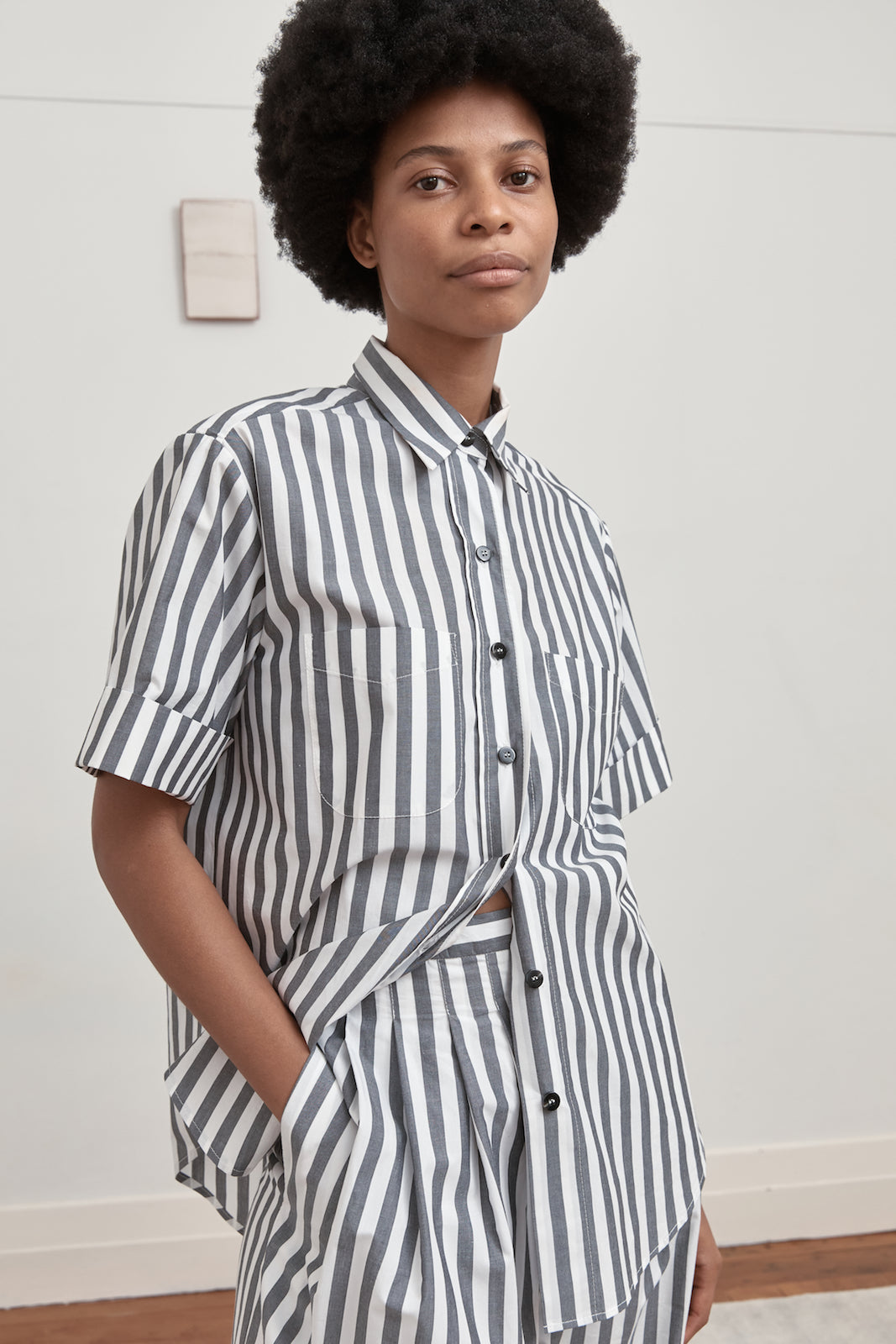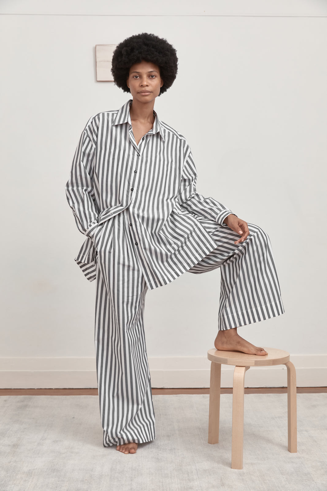 Featuring refined tailoring, The Summer Slacks are a high waist trouser with with fly front opening and waistband. The wide leg allows this cotton to drape perfectly from the tailored front pleats. Made from 100% organic Japanese cotton.